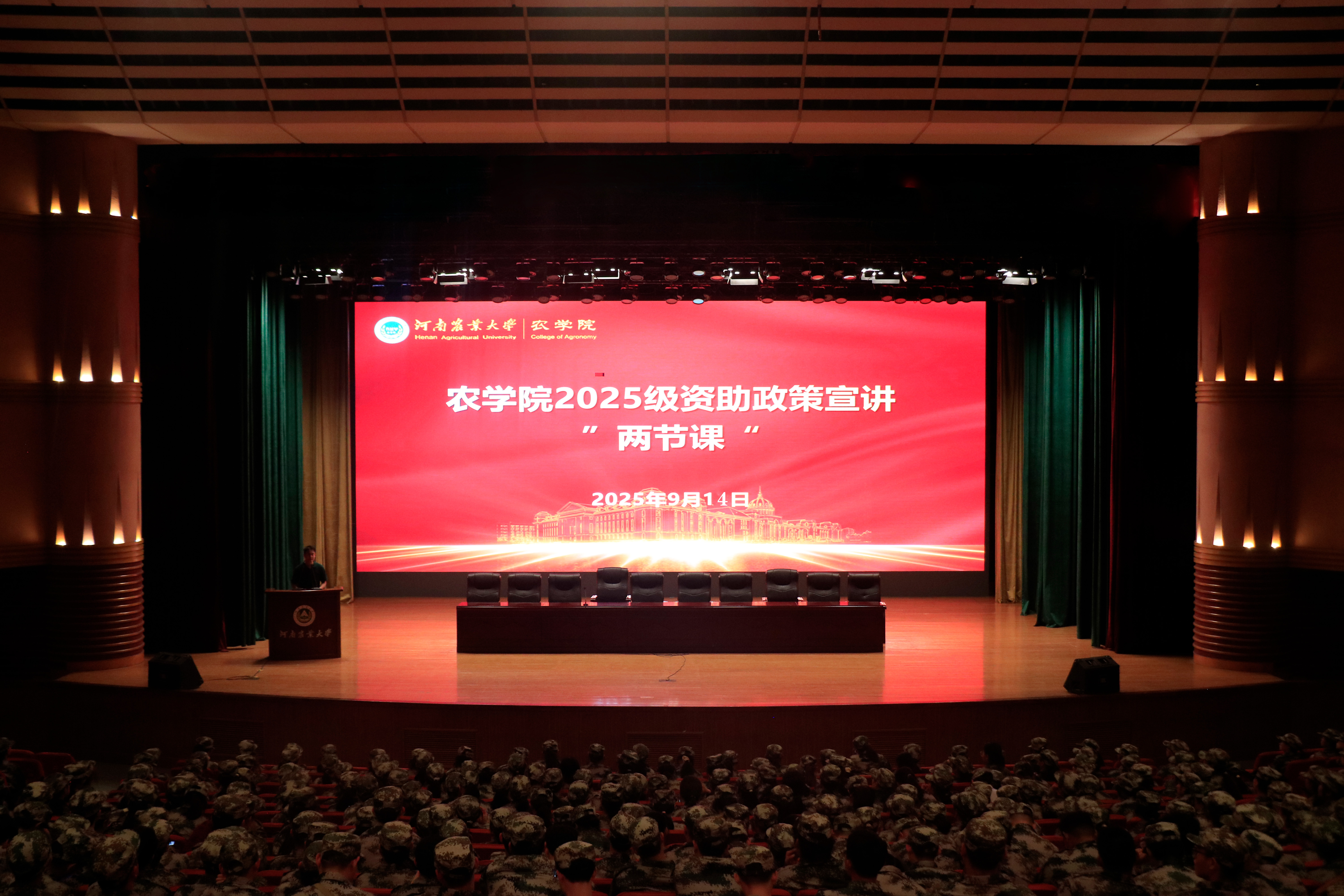 于文化路大礼堂开展了秋季学生资助政策“两节课”活动。2025级全体学生及辅导员唐朝参与本次会议。