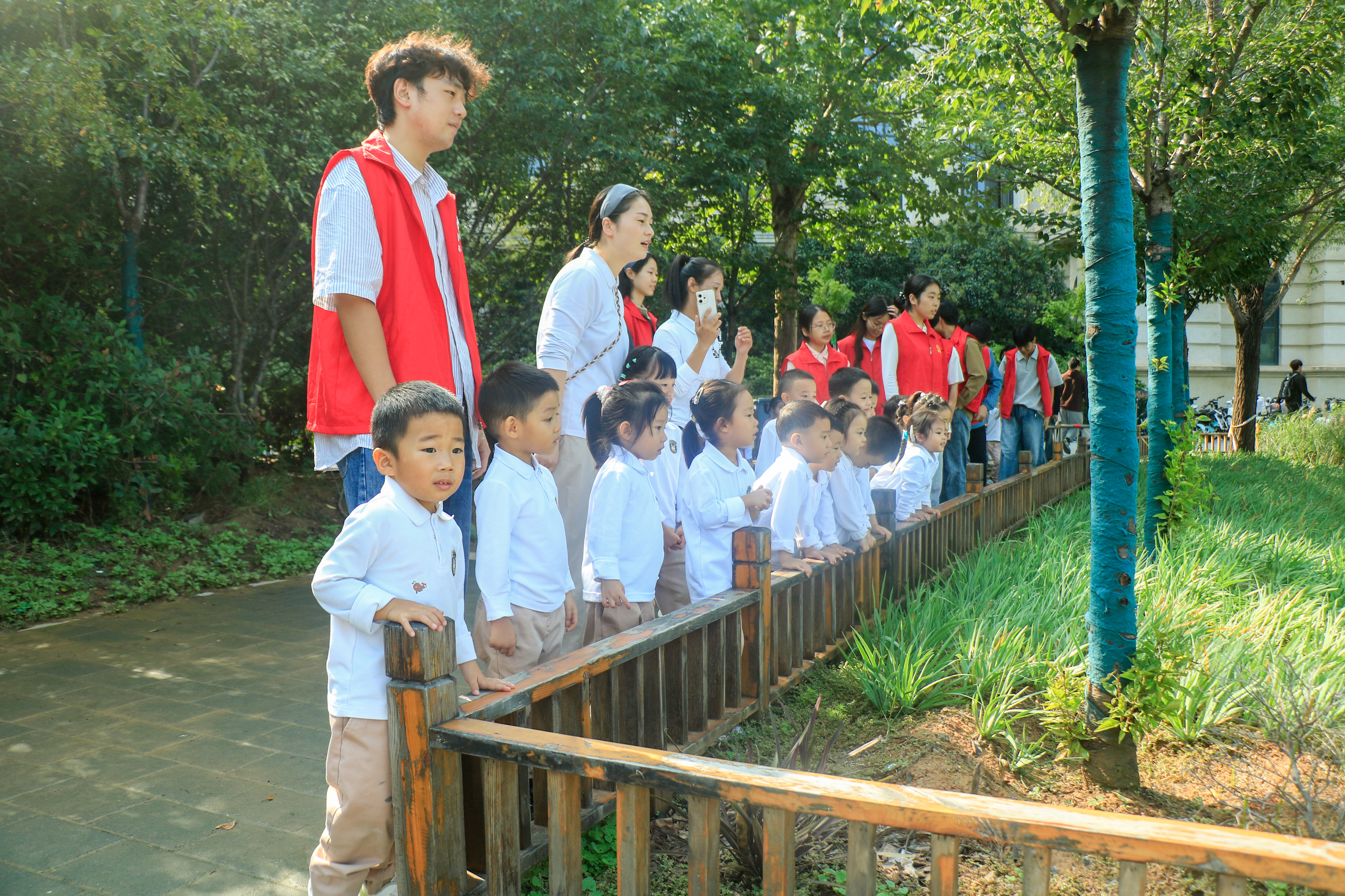 随后,师生一行走进智慧农业与数字乡村研究院,系统学习节气文化与现代农业科技知识。张志勇老师围绕“二十四节气”核心主题,结合教具模型,生动讲解农业知识及相关科技应用要点,并耐心解答小朋友提出的疑问。现场幼儿全程专注投入,充分展现出强烈的求知欲。活动尾声,全体师生在实验楼前合影留念,为此次农业奥秘探索之旅定格珍贵瞬间。