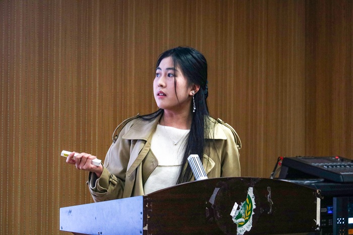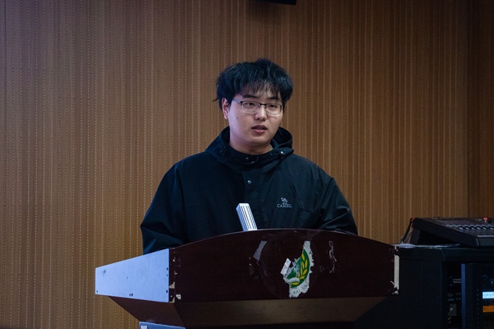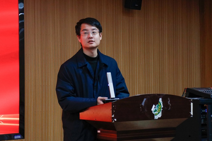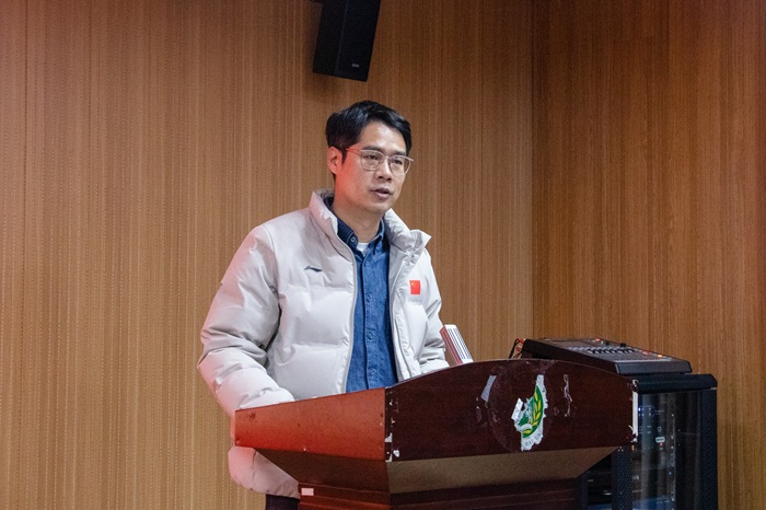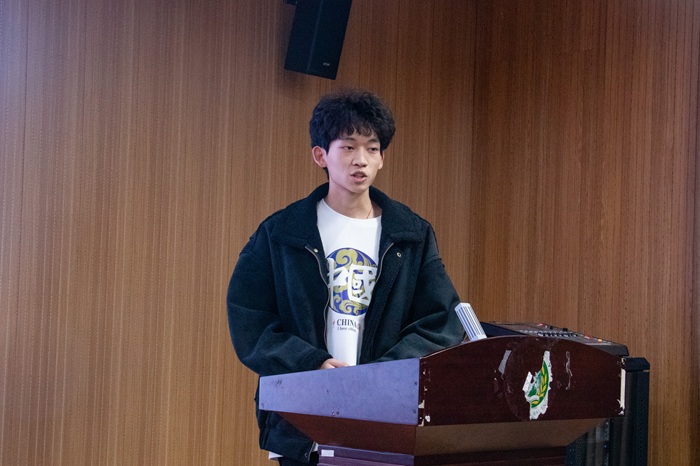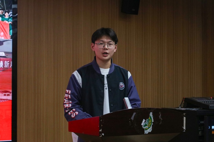 社会实践先进个人代表任豫阳上台发言,他结合自身实践经历,分享了在实践过程中的收获与感悟。他回顾了深入基层调研的点滴细节,生动讲述与群众互动、参与社区服务、解决实际问题的难忘体验。他表示,社会实践让他拓宽了视野、增强了责任感,并鼓励更多同学积极参与实践活动,在服务社会中实现自我成长。
