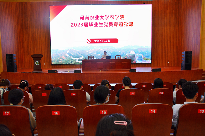 于图书馆报告厅举行2023届毕业生党员专题党课,学院党委书记马菲、正科级组织员李盼、毕业生辅导员、全体本硕博毕业生党员参加了此次活动。