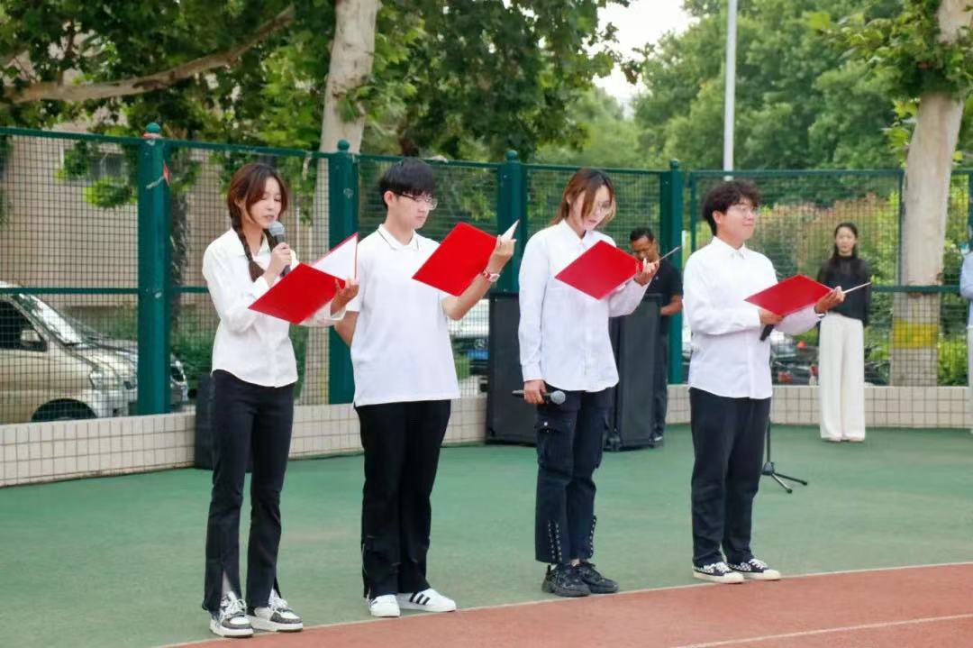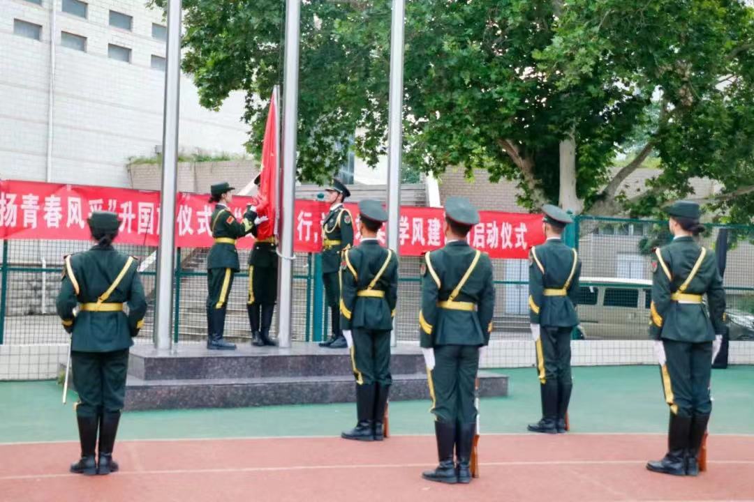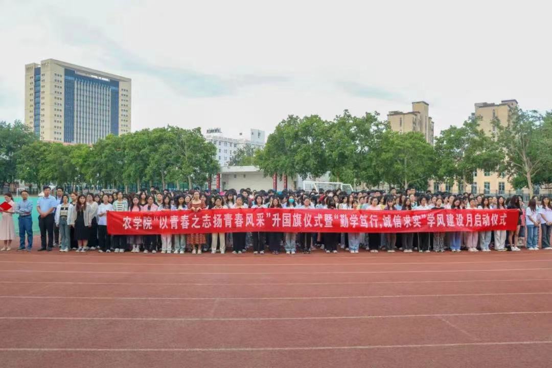 于文化路校区操场举行“以青春之志扬青春风采”升国旗仪式暨“勤学笃行,诚信求实”学风建设月启动仪式。院党委书记贾磊、院长王道文、院党委副书记方芳、团委负责人、辅导员代表及2023级全体学生参与此次活动。本次活动由院团委书记朱瑞萍主持。
