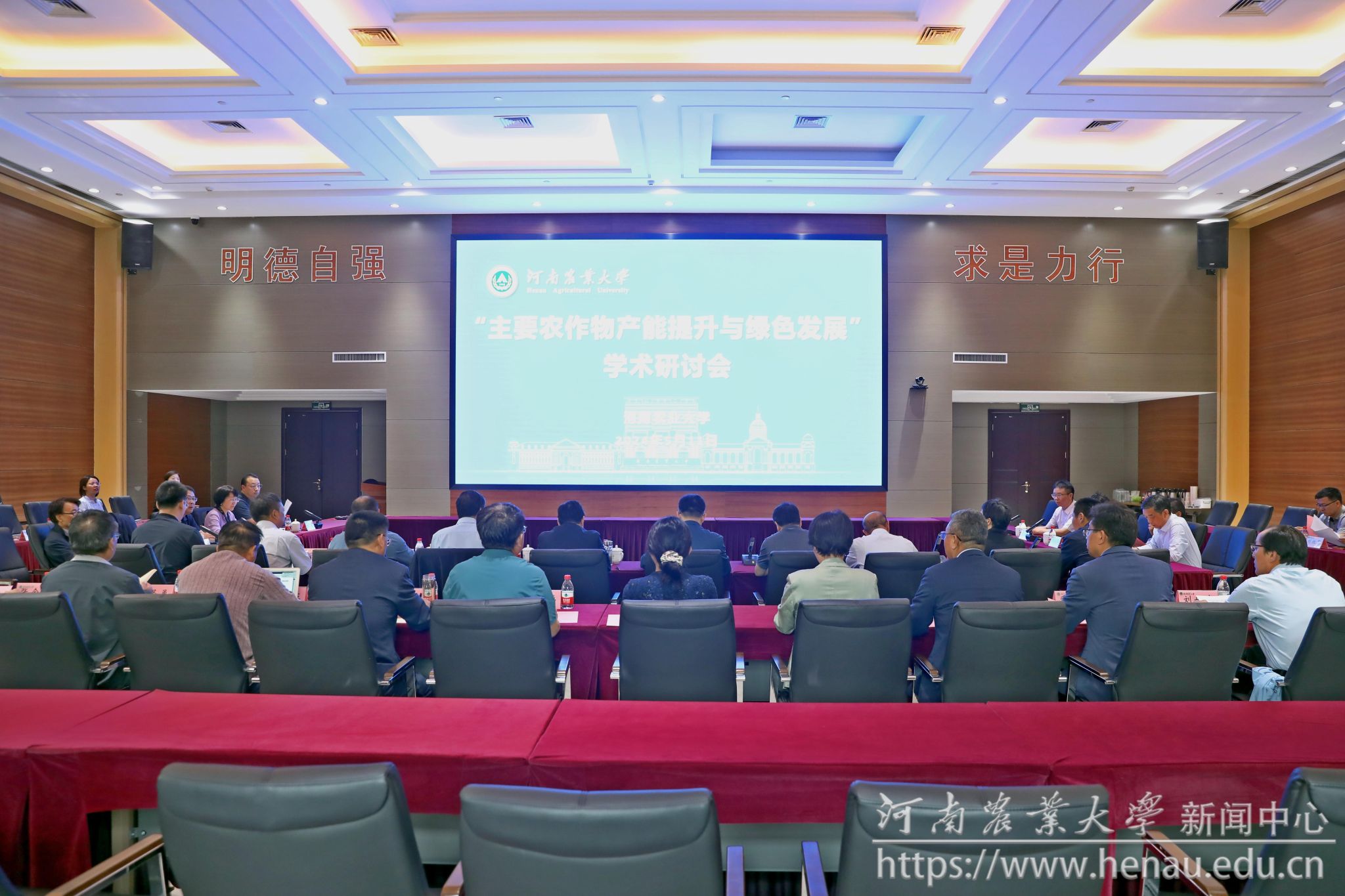 本网讯(通讯员 姜鑫 图片 黄璞)5月11日,“主要农作物产能提升与绿色发展”专题学术研讨会在我校龙子湖校区召开。山西农业大学校长张强,学术委员会主任、中国工程院院士徐明岗,资源环境学院院长刘奋武、副院长杨治平和北京市农林科学院研究员赵同科、山东农业大学教授杨越超应邀参会。校党委书记李成伟,校长、中国工程院院士周卫,原校长介晓磊、副校长刘晓永、赵鹏,学术副校长王道文、汤继华出席会议。相关职能部门、学院负责同志,专家教授参加会议。周卫主持会议并致辞。