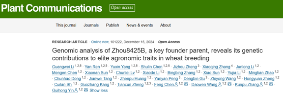 王道文、陈锋和殷贵鸿团队在Plant Communications上在线发表了题为“Genomic analysis of Zhou8425B, a key founder parent, reveals its genetic contributions to elite agronomic traits in wheat breeding”的研究论文。该研究绘制了中国小麦骨干亲本周8425B高质量基因组物理图谱,以周8425B中1RS易位染色体臂为基础探讨了不同遗传背景中1RS的结构变异特征,挖掘到一个小麦成株期条锈病抗性新位点