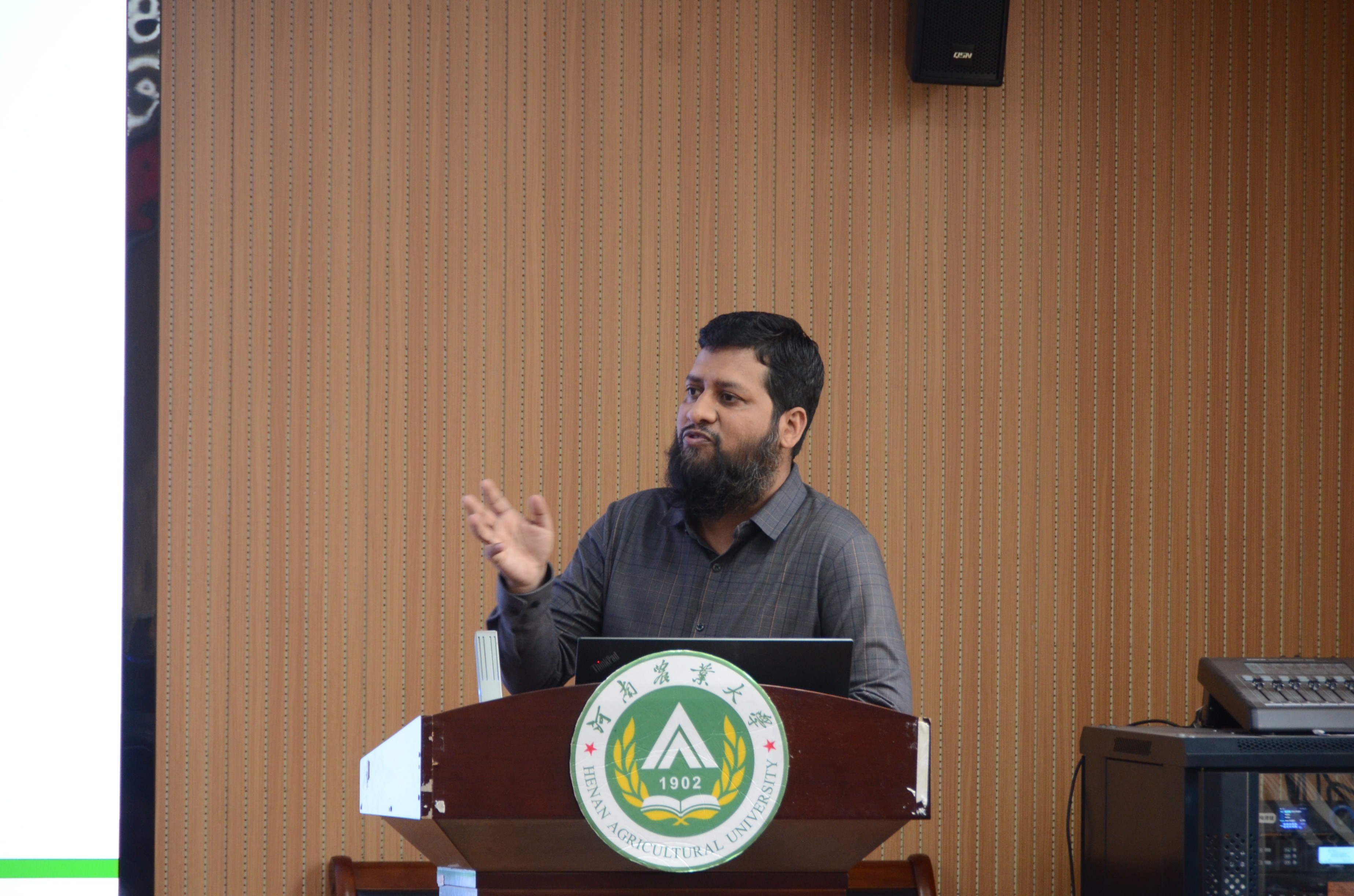 Pawan Singh教授分享了“Wheat blast — a global status update”专题报告。他通过数据展示了气候变化可能导致小麦病害如条锈病的传播和对全世界小麦产量的影响,指出中国已成功开发出抗条锈病的小麦品种,中国和印度正在通过建立监测平台和进行国际合作研究积极应对可能的病害威胁。并就中国2023年小麦全球产量第一但是出口并非第一的问题与师生展开了讨论。