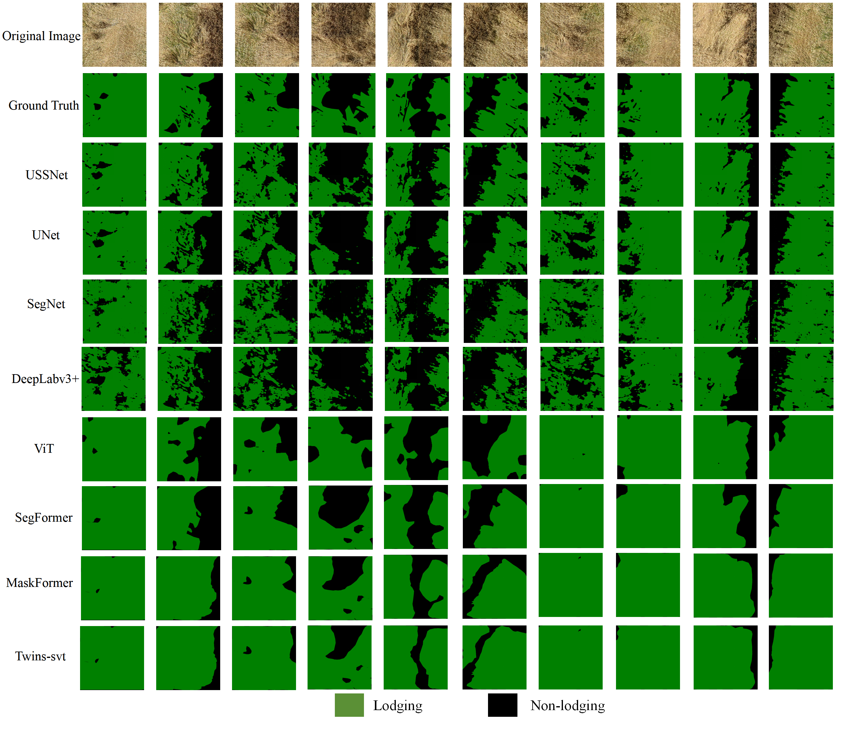 图 小麦倒伏数据集上不同算法分割结果