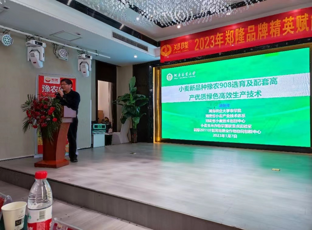 会上郭天财教授作了《2023年春季麦田管理技术要点》的学术报告,就当前黄淮麦区苗情、存在主要问题、春季麦田管理技术要点进行了详细讲解;殷贵鸿研究员作了《小麦新品种豫农908选育技术暨配套高产优质绿色高效栽培技术研究》的报告,详细讲解了豫农908选育技术、优良特性和配套高产优质绿色高效栽培技术研究;唐建卫副研究员在韩董庄镇的麦田进行了现场培训。