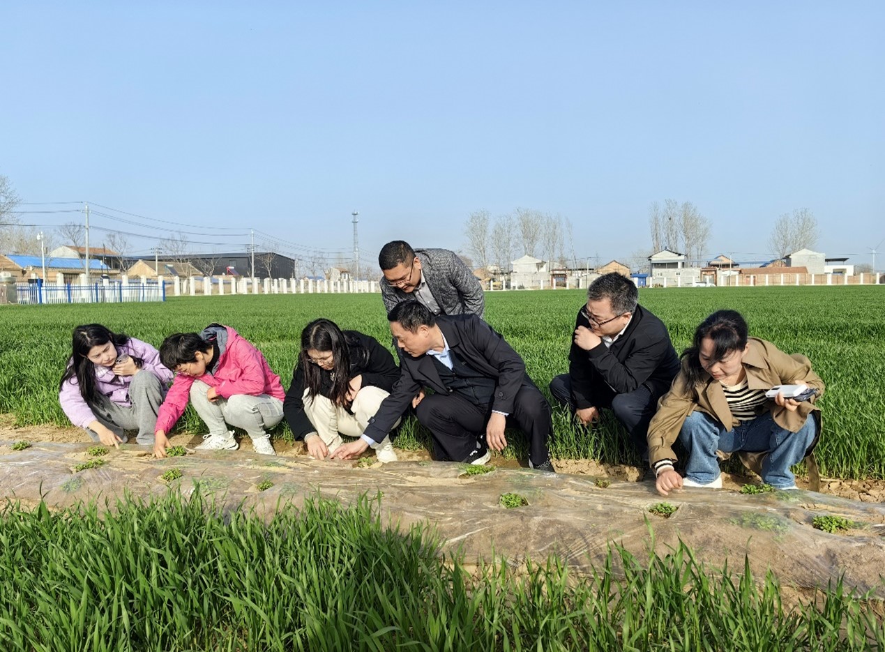 李贺敏教授、张红瑞教授、周艳副教授带领研究生一行9人奔赴商丘市国营民权农场指导中药材春季管理。商丘市国营民权农场党委书记王西城、场长祝学强等陪同调研。