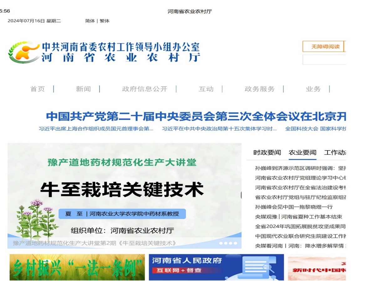 本网讯(通讯员:张学林)近日,河南省农业农村厅组织启动了“豫产道地药材规范化生产大讲堂”,并在省农业农村厅官网开辟专题栏目陆续推出。7月16日,91吃瓜