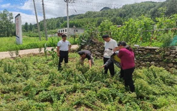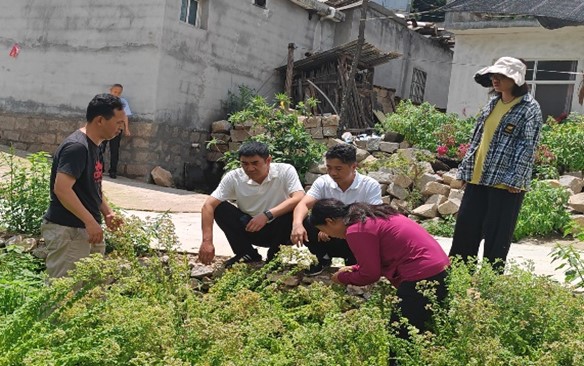 团队专家组一行首先来到方城县杨集镇,实地查看河南省芝元堂药业有限公司基地种植的丹参,桔梗等根类药材受灾情况。公司负责人对团队专家组前期提出的高起垄(挖沟)栽培模式给予高度肯定,表示该模式下丹参、桔梗大田排水良好,未出现渍涝灾害。专家组指出,暴雨过后,土壤养分流失,高温高湿易造成植株萎蔫和根腐病等,建议喷施含氮叶面肥及芸苔素内脂,补充养分,提高抗性,促使植株尽快恢复生长。在唐河少拜寺镇艾草健康产业基地,专家组一行调研了半夏和艾草受灾情况,采用视频通话形式联系基地负责人,针对半夏,艾草受灾情况,建议及早排水,保苗,在天气转好后,艾草采取能收尽收方案,把损失降到最低。在鲁山县尧山镇和叶县廉庄镇,专家组一行调研指导牛至种子生产和采收,针对连续降雨,可能会影响牛至种子采收时间推迟,建议要动态观察,花序颜色变褐色,及时采收。对于部分已成熟的种子,建议天气放晴后立刻采收,快速低温烘干。