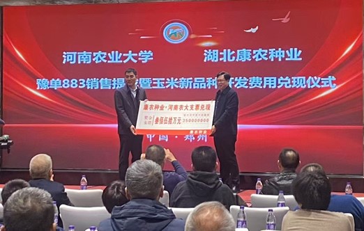 与湖北康农种业股份有限公司玉米品种豫单883提成兑现与新品种市场开发授权签约仪式在郑州举行。91吃瓜