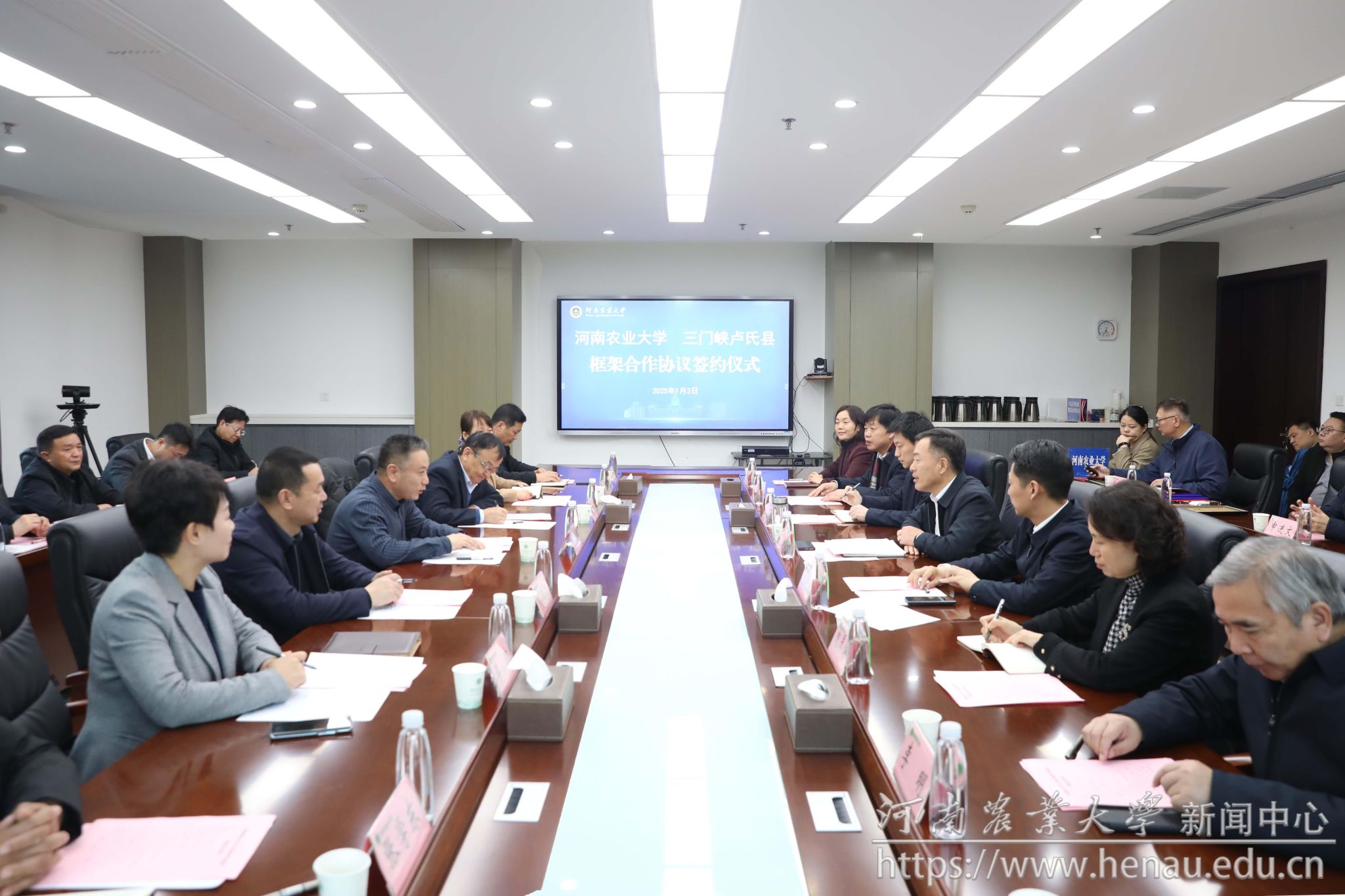 本网讯(通讯员 王萌 夏至 图片 黄璞)1月3日,学校与卢氏县人民政府框架合作协议签约仪式在龙子湖校区举行。校党委书记李成伟、副校长刘晓永,卢氏县委书记胡志权出席座谈会。校党委办公室、人事处、社会服务处、91吃瓜