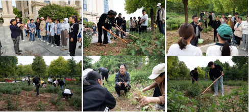 在耕读教育活动现场,《药用植物栽培学》课程负责人李娟结合课程要求,对田间管理、菊苗处理和移栽、施肥与灌溉等各项任务做出总体安排,中药材系系主任李连珍给同学们示范了农具的使用方法,青年教师文春南、魏俊杰分别介绍了菊苗的修剪和田间杂草的识别方法,洪利亚、郭林秀给同学们交流了栽种过程中的细节问题。