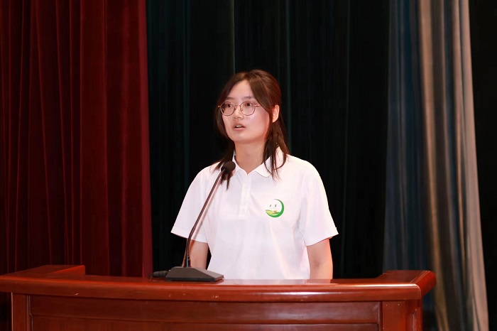 本科生高年级学生代表2020级农学2班牛瑞利同学发言。她回忆自己的大学生活,深刻阐述自己对农学专业的见解,与学弟学妹们共勉 。她表示大学不是终点,而是新的起点,既要享受大学时光,更要明确人生目标,要用心摸索出适合自己的道路。