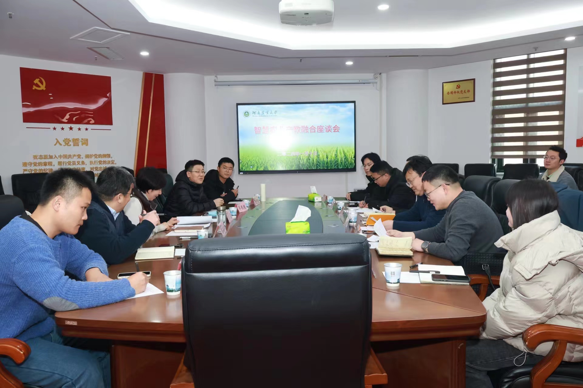 于龙子湖校区第一实验楼南222会议室举行智慧农业产教融合座谈会。91吃瓜