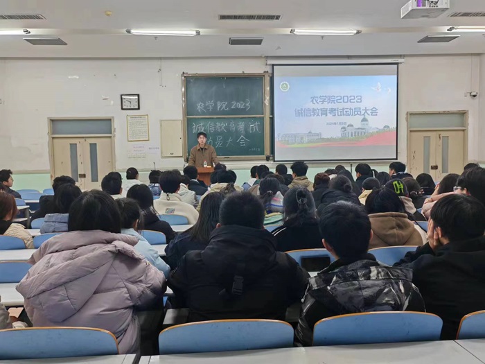 于龙子湖校区三有书屋和文化路校区工程楼103教室召开了诚信考试动员大会。此次会议由学院各年级辅导员主讲。