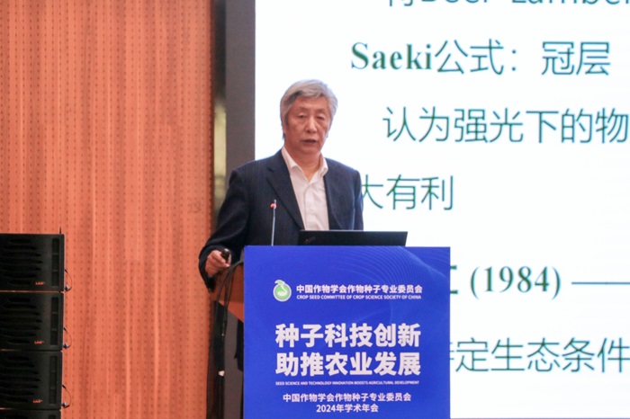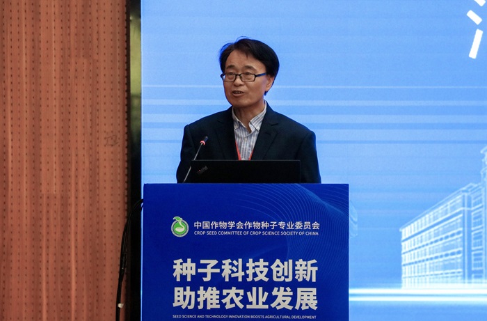 对本次会议的支持表示肯定,接着介绍了中国作物学会作物种子专业委员会的作用和地位,希望各位代表通过本次学术会议有所收获,有所启迪,在学术和智慧的判断中突破创新思路,为实现我国农业振兴做出更大贡献。最后,希望作物种子专业委员会和大家协同发展,互促互长。