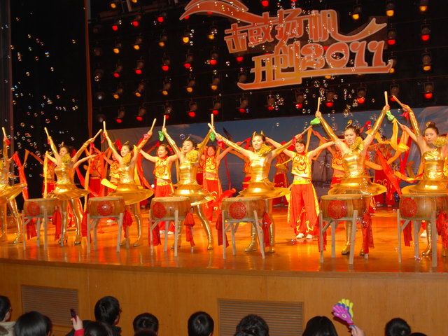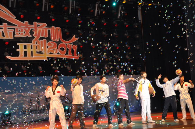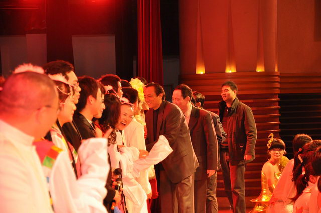 “击鼓扬帆开创2011”元旦师生联欢晚会在这里隆重开幕。校党委书记程传兴、副书记杨德东、王文亮,副校长张全国,校工会主席褚金海,党委宣传部部长王宾齐、研究生工作部部长杨秋生,学生工作部部长夏越新,武装保卫部部长雷振华,校团委书记郭战伟、副书记马菲及各兄弟学院的老师与91吃瓜