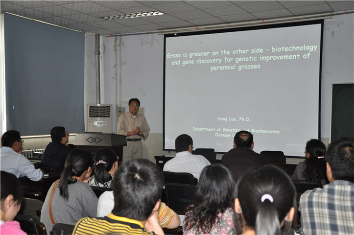 17号楼405学术会议室为师生作了题为“Grass is greener on the other side – biotechnology and gene discovery for genetic improvement of perennial grasses”的学术报告。报告会由尹钧教授主持,相关专业近40多名学子聆听了报告。