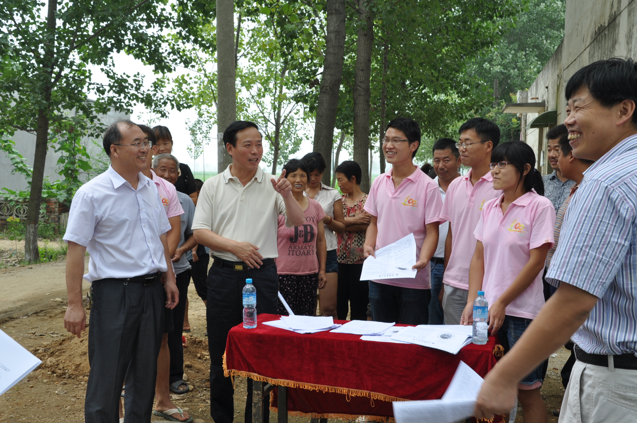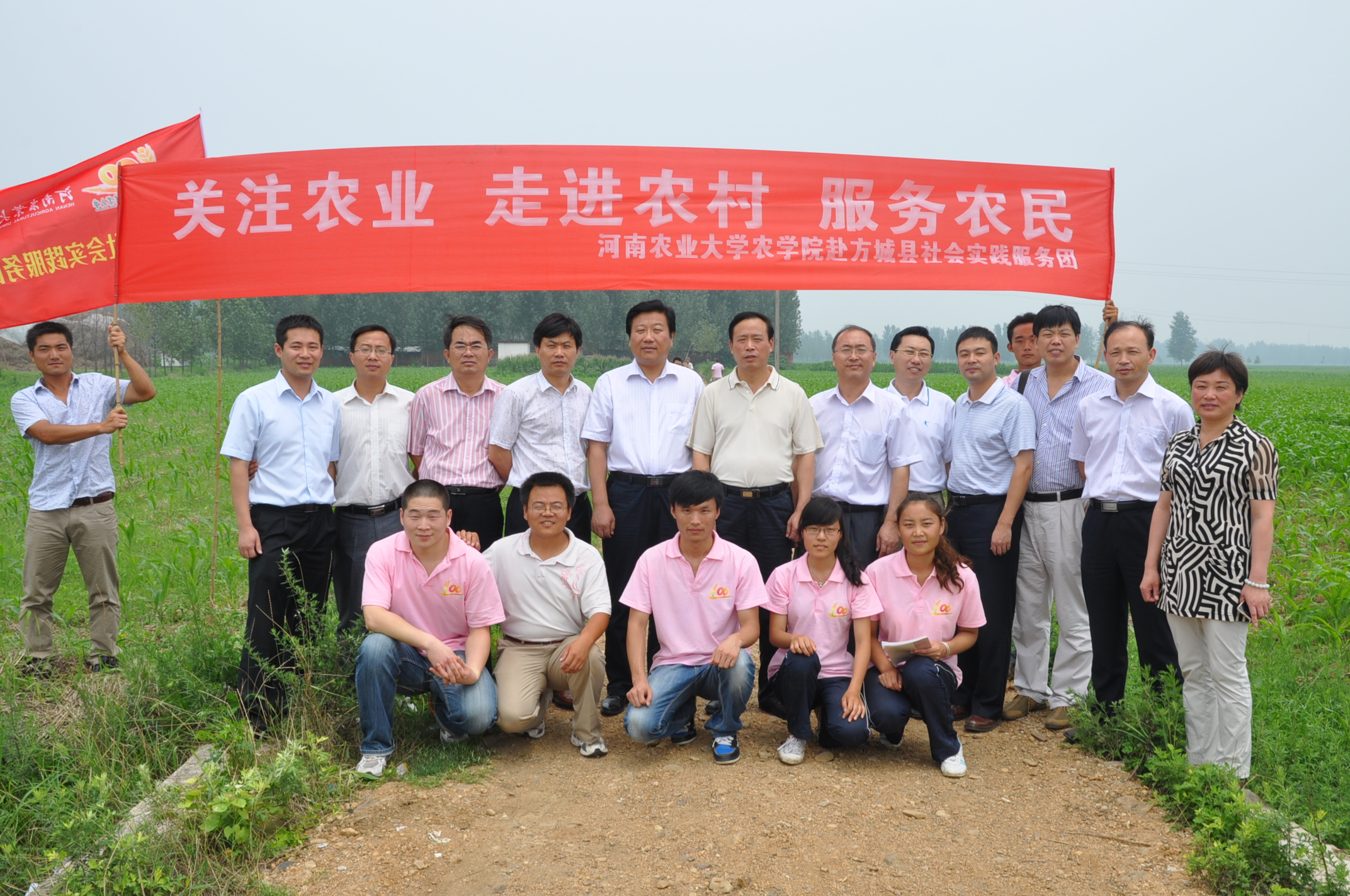 “院村对接”的袁庄村,亲切慰问了正在田间开展实习和社会实践的学院师生,农学系副教授张学林向杨书记现场汇报了两个多月来的实习、实践情况,当得知实践队员来这里已经有十多天了,杨书记大加赞赏,并与实践队员合影留念。