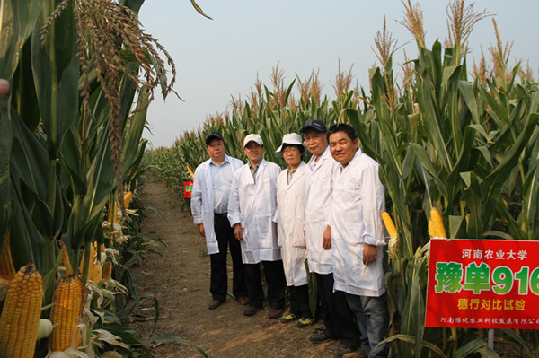 2012年9月18日,在91吃瓜 副校长谭金芳教授和玉米育种专家李玉玲教授的陪同下,河南省农业厅魏蒙关副厅长、生产处汤其林处长和马运粮调研员到位于长葛市的豫单916等新品种试验示范基地进行了实地考察。豫单916是我校李玉玲教授新选育的优良玉米新品种,该基地由我校授权企业河南豫优农业科技发展有限公司负责建设和实施。豫单916丰产、抗病、广适等综合优良特性,受到各位领导的一致肯定和赞誉,建议综合利用各种途径加速该品种的示范推广力度,并对李玉玲教授后续新品种的选育寄予厚望。