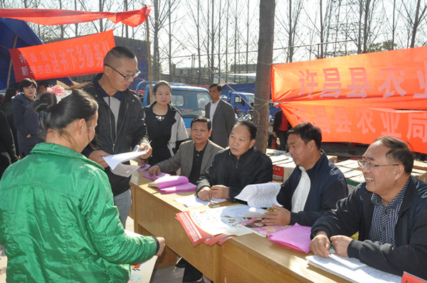 林同保教授一行首先听取了许昌市农业农村局关于“万名科技人员包万村行动计划”在许昌的实施情况介绍。随后,在许昌市农业农村局副局长高雅军和相关科室负责人的陪同下,专家组分别到许昌县五女店镇、陈曹乡,长葛市古桥乡等地进行了实地调研,听取了当地农技人员的情况介绍。专家组每到一处,都认真察看土壤墒情和小麦长势,结合当地实际情况,提出了补苗、控旺、除草、冬灌等具体的冬前管理方案。最后,与当地农技人员一道,参加了许昌县农业农村局“送科技下乡服务队”,现场发放技术资料,并解答农民生产中遇到的技术问题,使科技生产的意识和技术走进千家万户。