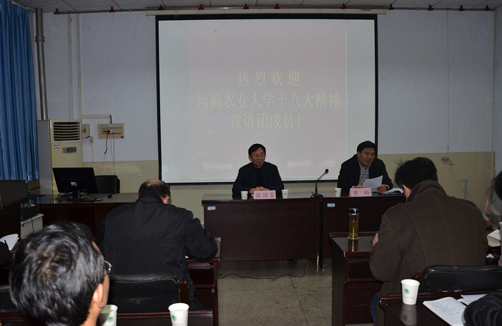 张国富教授以《深刻领会十八大精神科学把握“五位一体”总布局》为题,深刻阐述了党的十八大召开的重要意义,全面解析了党的十八大12个方面的新思想、新观点,科学把握了经济建设、政治建设、文化建设、社会建设、生态文明建设“五位一体”中国特色社会主义总布局的深刻内涵,并结合高校的四大职能,提出要将创建全国一流农业大学的奋斗目标融入到“五位一体”建设总体布局中,在实践中加以把握和推进。