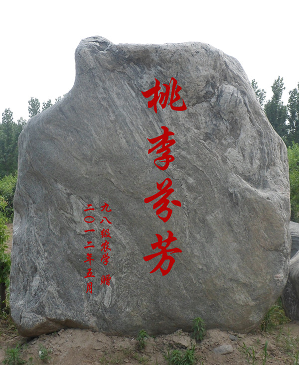会后,与会师生合影留念并向母校捐赠刻有“桃李芬芳”的泰山石,该石尺寸2.8m×2.6m×1.1m,寓意母校桃李芬芳,学子勇攀高峰。