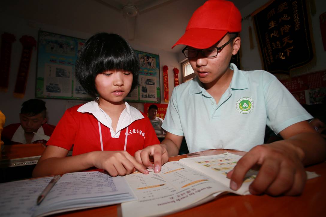 的志愿者专程来到筑梦爱心辅导站,辅导留守儿童做暑假作业并和他们一同做游戏。据了解,他们将和孩子们待在一起5天,一方面奉献爱心,一方面利用暑假了解社会、认识社会,增加阅历。