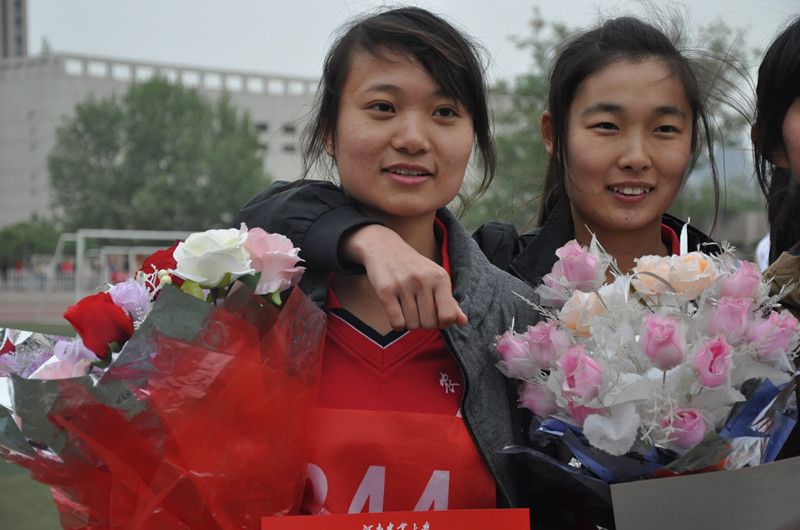 包揽女子400米栏冠、亚军(从左至右:龚璞、崔爽爽)