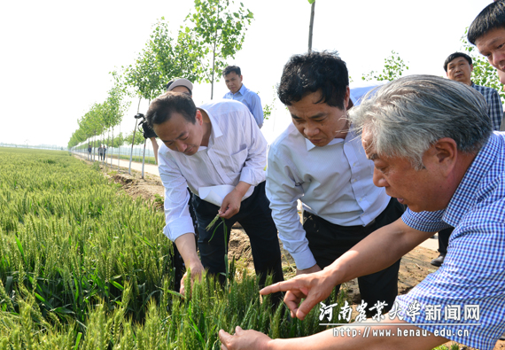 5月8日下午,校长、中国工程院院士张改平赴长葛,查看“2011计划”河南粮食作物协同创新中心现代农业试验区建设情况。河南粮食作物协同创新中心小麦首席科学家、中国工程院院士程顺和,长葛市委书记刘胜利、市长尹俊营,我校和长葛市及豫粮集团有关单位负责人参加活动。