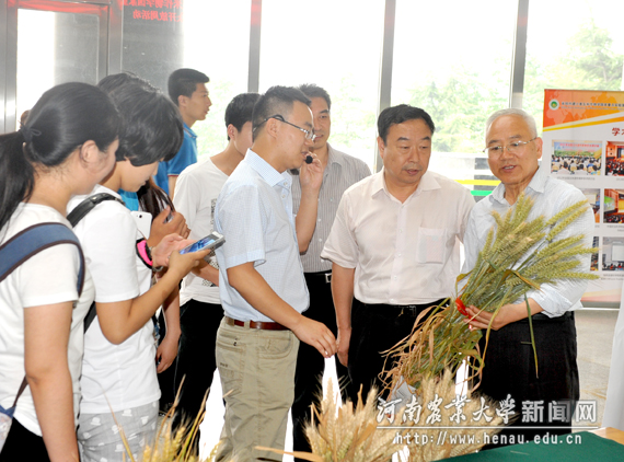 开幕式结束后,与会师生现场参观了实验室科普展。大家在实验室专家带领下,饶有兴趣地比较着长短不一的麦穗、各式各样的玉米果穗,品尝了由实验室选育的“豫爆2号”爆米花,现场学习了解小麦玉米的种植概况、生长发育、栽培技术、新品种选育、病虫草害、营养缺乏等小麦玉米相关知识,充分体会到了小麦玉米育种的乐趣。