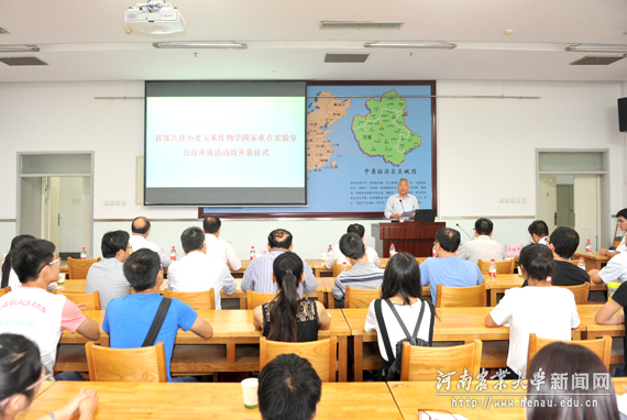 河南省科技厅基础处处长郭遂臣向大家介绍了科技部国家重点实验室的成立与发展、河南农业当前情况以及在国家的地位、国家重点实验室公众开放的目的和意义,并希望各位同学能够体会到科研工作的艰辛与乐趣,培养科研意识。