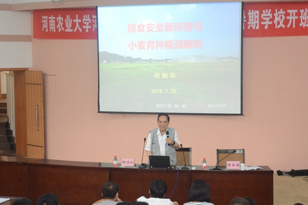7月25日上午,中国工程院院士、国家小麦产业技术体系育种与种子研究室主任、河南粮食协同创新中心小麦首席科学家程顺和在校礼堂300人报告厅为师生做了题为“粮食安全新形势与小麦育种瓶颈解析”的学术报告。报告会由校党委副书记褚金海主持。