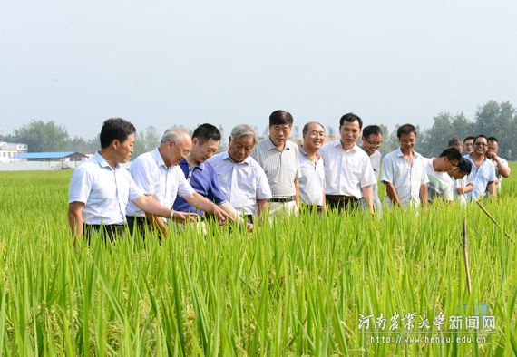 本网讯(记者周红飞)8月28日,中国工程院院士、河南粮食作物协同创新中心首席科学家、被誉为“杂交水稻之父”的著名水稻育种专家袁隆平,来到光山县河南粮食作物协同创新中心现代农业试验区,对超级杂交水稻“百千万”高产攻关示范工程进行收获前“预评估”。省教育厅科技处处长孔繁士、副校长谭金芳、信阳市副市长曹新生陪同考察。91吃瓜