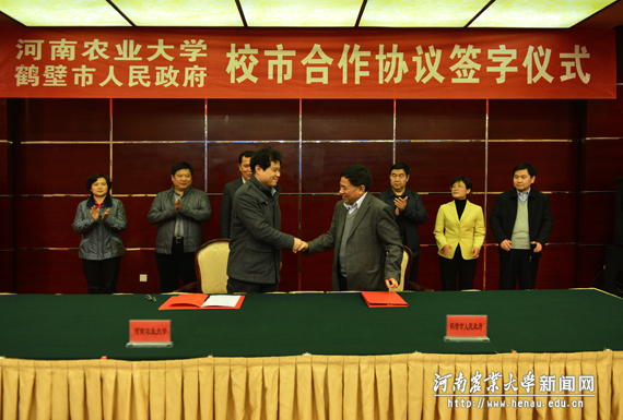 院长林同保教授同鹤壁市农科院负责人签署了合作协议。