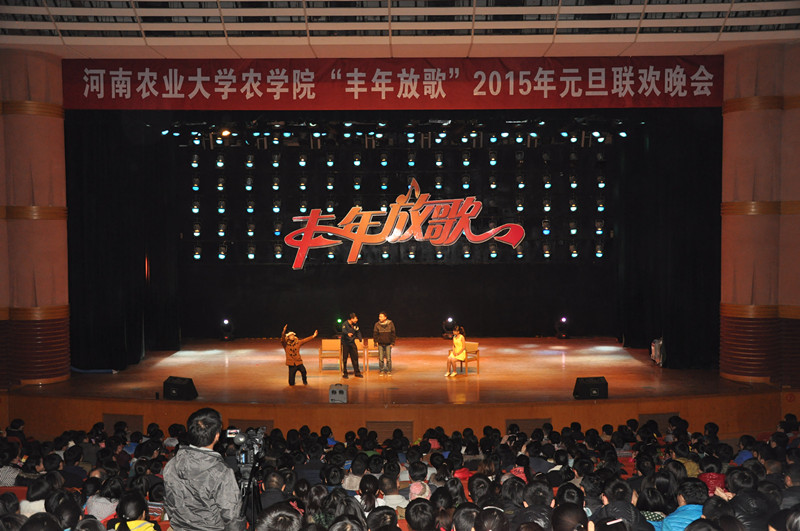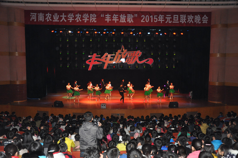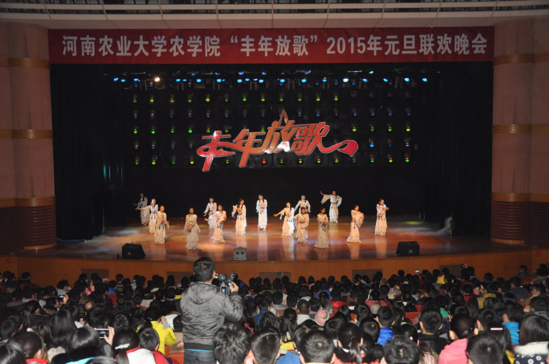 伴随着一声“开门红”的呐喊声,由学院老师带来的舞蹈《开门红》拉开了晚会的序幕,红火大气的阵容,欢快活泼的节奏,顿时夺得了观众雷鸣般的掌声。整台晚会精彩纷呈,高潮迭起,创意独特,引人入胜。歌曲串烧《最美的太阳》、《最初的梦想》、《Love story》、《光辉岁月》,舞蹈串烧《小苹果+冬天里的一把火》、《雷人舞》、T台《生如夏花》创意独特,别具匠心,展示了青年大学生蓬勃的生机与活力,把农院学生饱满的激情抒发的淋漓尽致;歌曲《野百合也有春天》、舞蹈《美人吟》、手语《爱》、乐器《小步舞曲》则又把学生细腻婉约的感情演绎的惟妙惟肖;相声《大学生活的多与少》语言风趣幽默,博得观众阵阵掌声;小品《校园晒晒吧》围绕大学生的日常生活、学习加以改编,以访谈搞怪的形式,对校园及社会的不良现象进行讽刺,在吸引观众不时捧腹大笑的同时,传播正能量,发人深省;话剧《梁山伯与祝英台》诙谐滑稽,演绎了一段现代版的经典爱情故事;2014级助班深情的朗诵《九月的纪念》,感染了每一位新生,场上场下真情互动,掌声和欢呼声一浪高过一浪,现场气氛异常热烈;学院韶乐团带来的合唱《我和我的祖国》气势恢宏,引起了全场师生的共鸣。晚会在全场同唱校歌《绿色颂》的嘹亮歌声中缓缓落下帷幕。