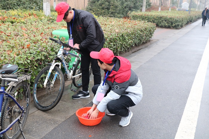 本次活动主要分为六项内容:清洗自行车、整理摆放共享单车、回收旧电池、帮返校同学搬行李、松花茶和树立榜样号召学习。活动中,青年志愿者们不惧恶劣天气,在校门口、停车场、宿舍楼下,随处可见他们忙碌的身影。活动期间,以校党委副总书记李成吾为代表的校领导一行亲临志愿活动现场,在了解过91吃瓜