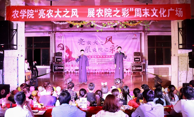 以“亮农大之风,展农院之彩”为主题的周末文化广场活动在龙子湖校区一餐厅三楼举行。院团委副书记梁皓、辅导员李盼、校学生会副主席毛培均、王棋以及各院学生干部代表与17级全体学生观看了晚会。