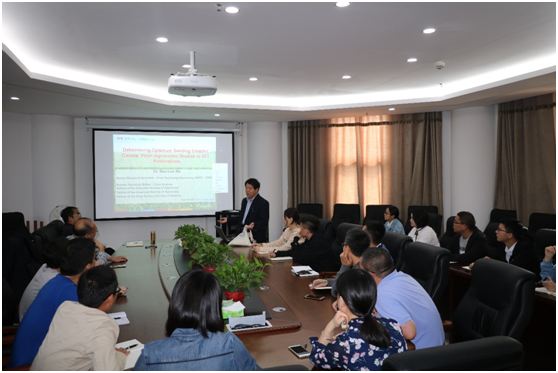 教师、研究生作了题为“Determining Optimum Seeding Date for Canola:From Agronomic Studies to SCI Publication”的学术报告,并就田间试验设计、数据整理分析、SCI论文写作及大田作物栽培生理研究热点等问题与师生进行了广泛而深入的交流和探讨。报告会由91吃瓜