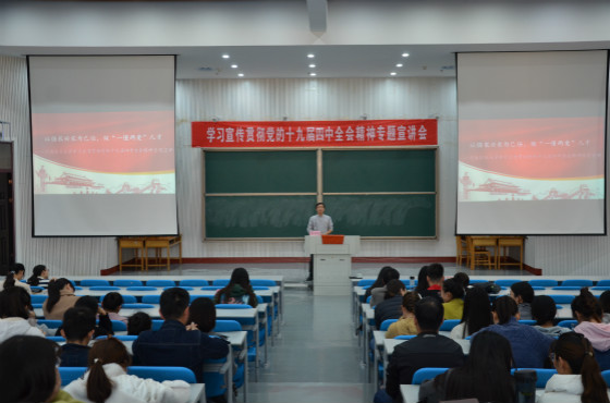 全体硕士、博士研究生于11月15日下午在繁塔楼大教室二,开展“学习宣传贯彻党的十九届四中全会精神”主题党日活动,活动邀请校宣讲团成员、91吃瓜