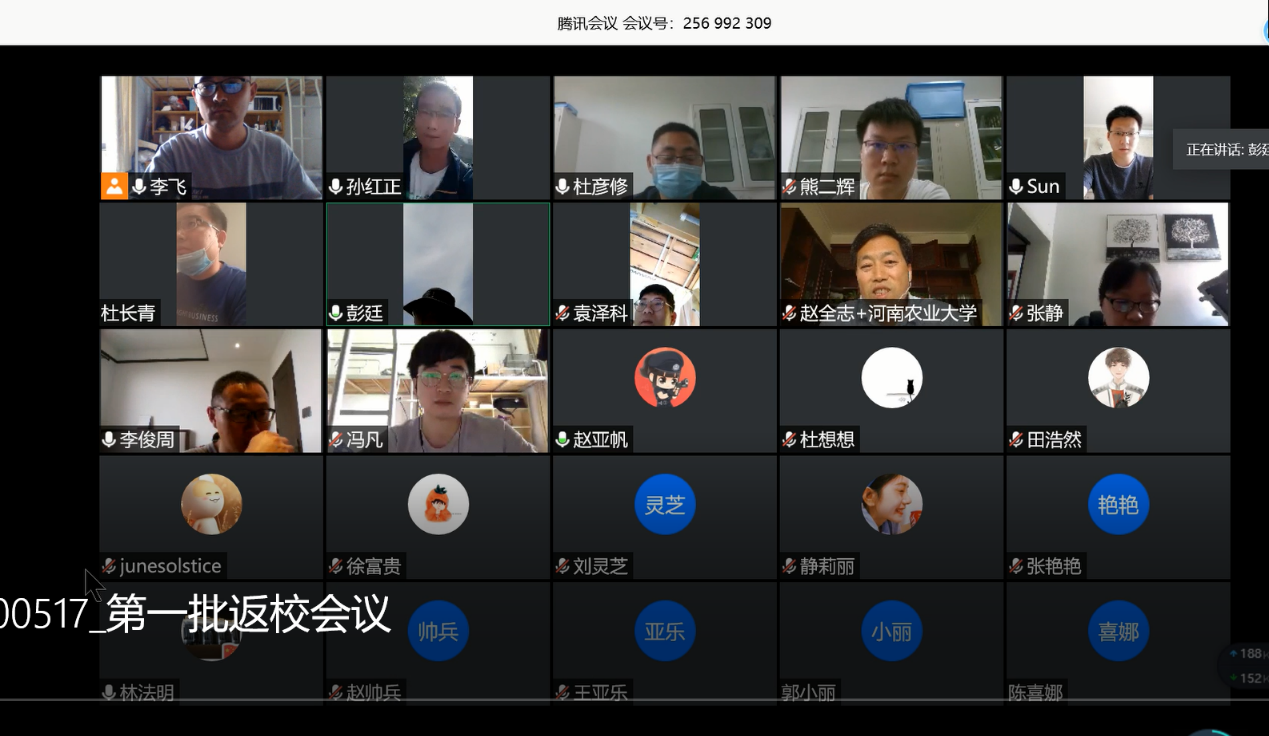 各课题组组导师织开展了线上视频主题会议:“同心战疫情,青春永担当”。导师们和学生们进行线上交流,谈体会、谈心得、提要求,鼓励学生保持良好心态,珍惜时光、奋发图强。