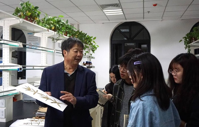 在学院“三有书屋”里,高致明教授与同学们亲切交流,深情地告诉大家中药学并不仅仅是一门学科,它更是中华民族传统文化的代表。作为中药学子,大家不仅要学好教学任务中的理论课程,更重要的是去走近它、感悟它,用心做好中药学的传承。纸上得来终觉浅,绝知此事要躬行。为了帮助大家跟进一步地了解中药学,高致明教授带着大家来到了龙子湖繁塔楼西侧的药王谷。面对药王谷里的各种中药材,高致明教授为大家一一讲解,为大家传输大量专业知识,帮助大家去深层次了解中药材,理解中药文化的博大精深,做到真正的知行合一。最后,一行人回到实验楼,高致明教授在实验室里耐心地为大家讲解植物标本,大家听得津津有味,并认真做好记录。
