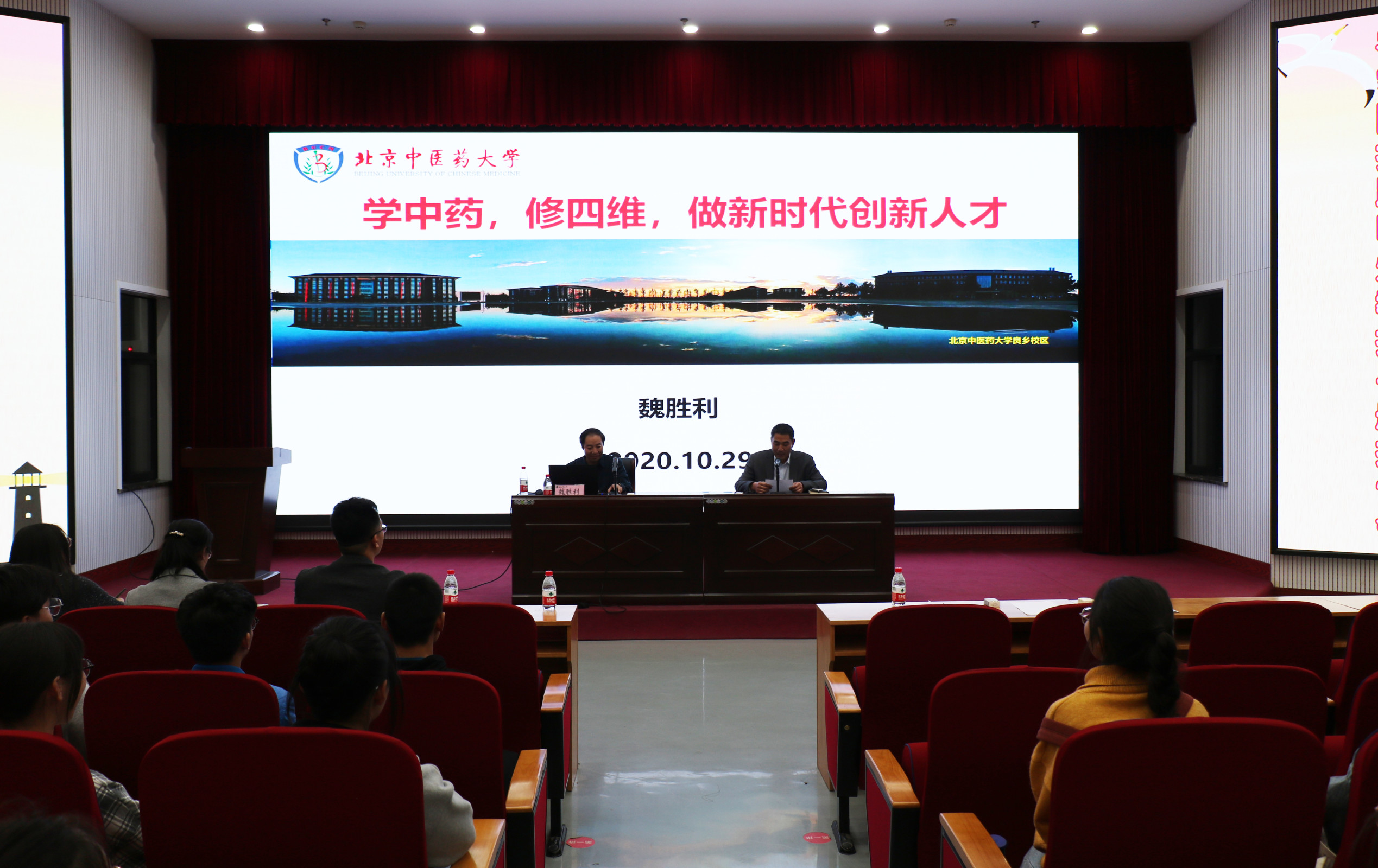 举办“指路明灯”教授导航报告会,北京中医药大学中药学院副院长、博士生导师魏胜利教授应邀为中药学专业学生作了题为“学中药,修四维,做新时代的创新人才”的报告。院长王道文、院党委副书记王建忠、副院长李浩贤,中药材系部分教师参加。