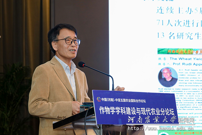 校党委书记魏蒙关致开幕辞,向参加分论坛的专家、领导表示欢迎。他简要介绍了学校的发展情况和我校作物学学科建设情况。他指出,河南是中国农业大省、粮食大省,此次中国(河南)-中亚五国农业国际合作论坛是落实“中国+中亚五国”外长视频会议联合声明的具体举措。在学校事业发展的关键时期,本次论坛的举办恰逢其时,对于共同谋划“十四五”发展,推进我校作物学学科内涵式高质量发展具有重要意义。他表示,我校将珍惜机会,认真学习,借鉴先进,弥补短板,进一步提升我校作物学学科群建设水平,努力凸显我们农大的优势和特色,推进现代农业发展,在服务区域经济社会发展中贡献更多力量。