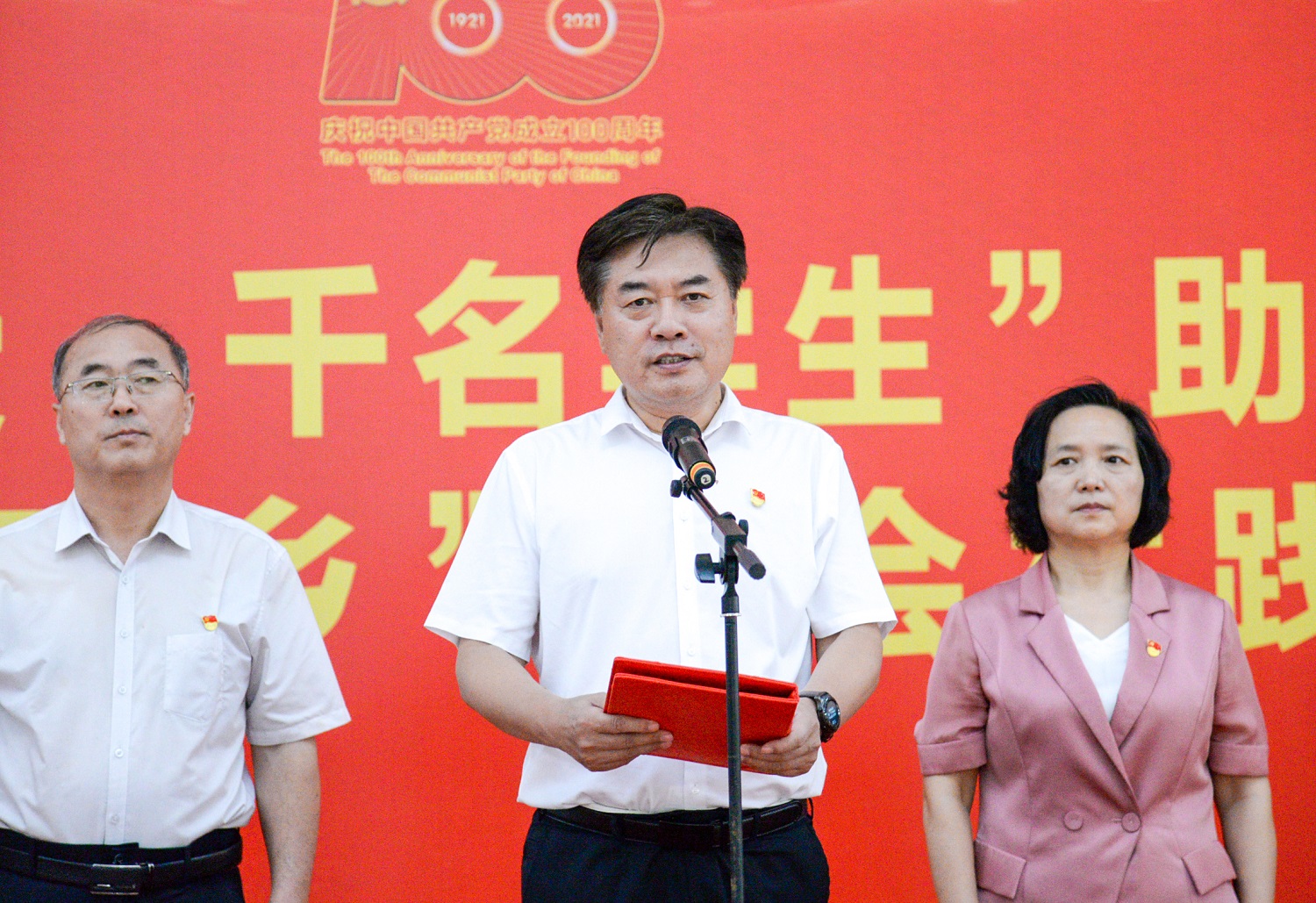 “百名教授 千名学生”助力乡村振兴暨2021年暑期“三下乡”社会实践活动启动仪式。校党委副书记、工会主席李成吾、副校长尹新明、副校长林同保和学校相关职能部门负责人出席了本次仪式,学院领导班子、学院教师代表和学生代表参加了本次会议。