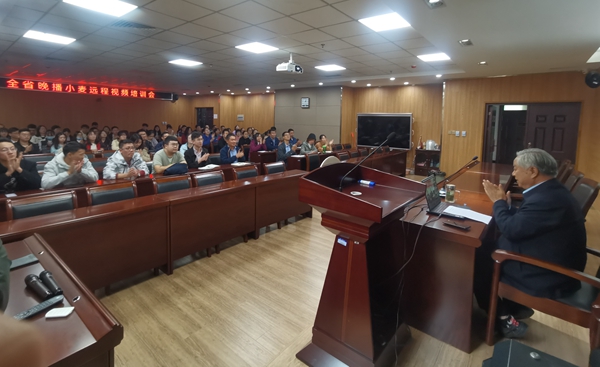 郭天财教授以远程视频方式对全省农业技术推广人员进行了应对小麦晚播的应变栽培技术培训,重点分析了当前我省小麦播种存在的各种困难问题,提出了应因地制宜,分类施策,制定不同类型麦田播种技术对策和全省小麦晚播条件下高质量种足种好小麦应特别注意的几个问题。91吃瓜