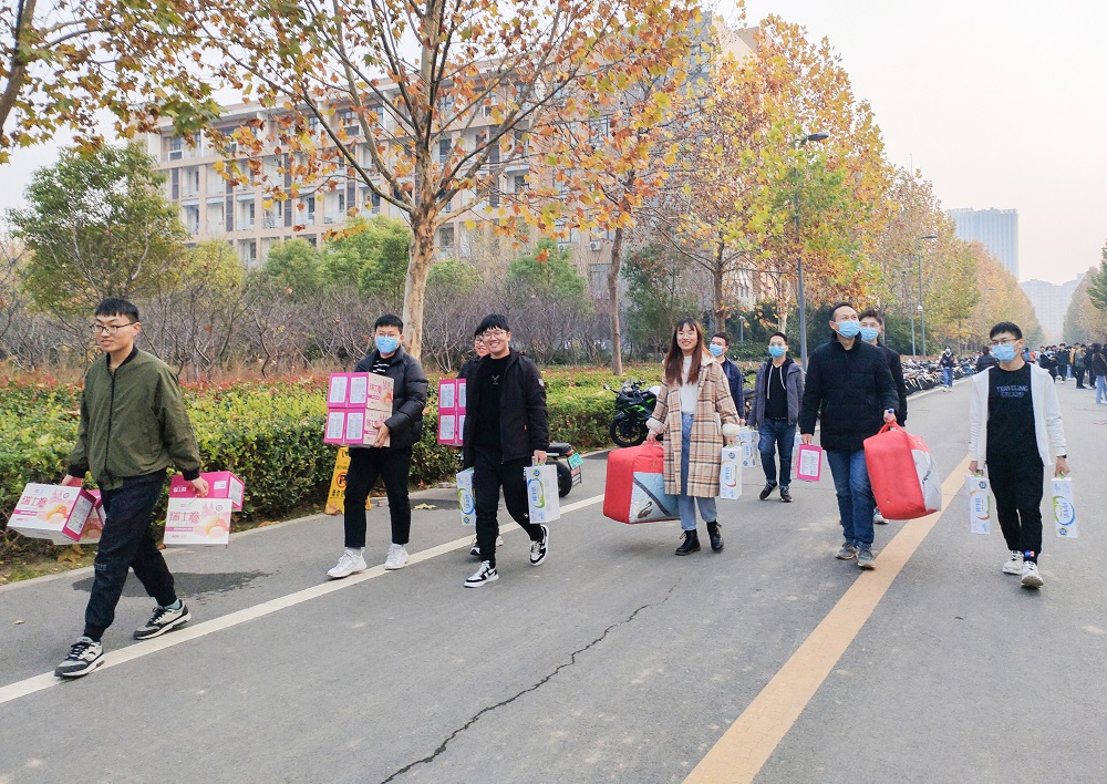 于龙子湖校区桂花宿舍楼下举办“‘研’路相伴,‘农’情护航”2021冬季送温暖活动。学院领导班子、团委老师、2018级班主任老师以及学生代表参加了此次活动。