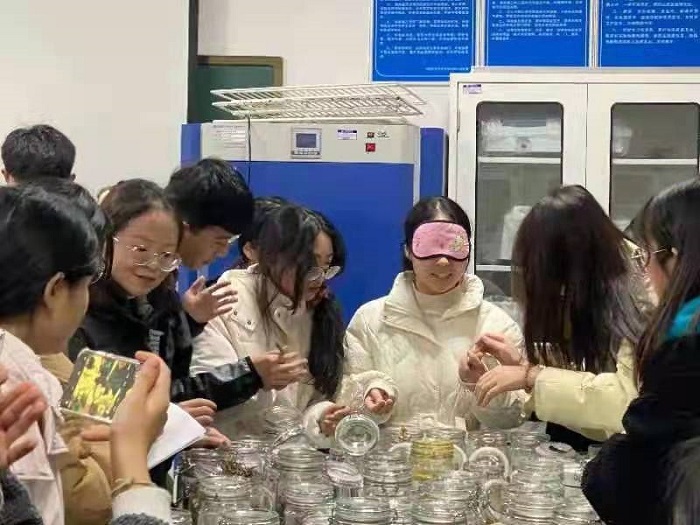 中药学专业老师张红瑞的带领下,2019级中药学专业学生齐聚实验楼共同参与开展“你说我猜”和“蒙眼鉴别药材”活动,此次活动旨在将中药乐趣带进课堂,激发学生专业兴趣,提高药材鉴别能力。