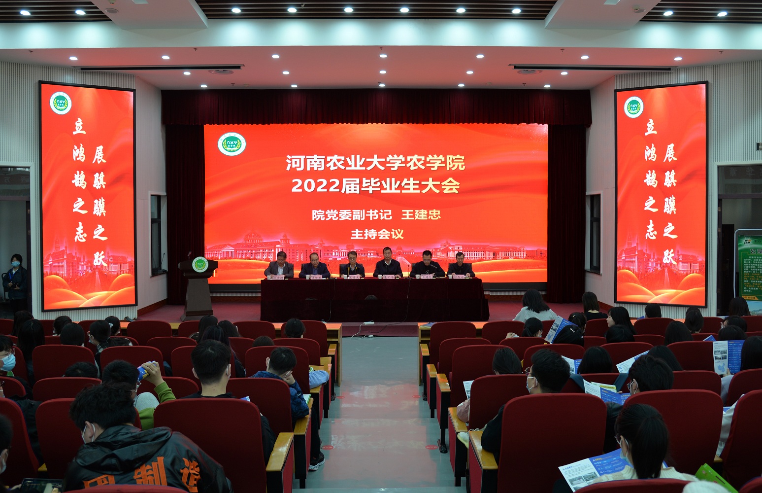 院长王道文,河南种子协会会长、河南金苑种业股份有限公司董事长康广华,校党委学工部副部长许世明,院党委副书记王建忠,副院长殷贵鸿,副院长程西永出席本次会议。院团委老师、校友代表、优秀学生代表及2018级全体毕业生参加本次会议。大会由王建忠主持。