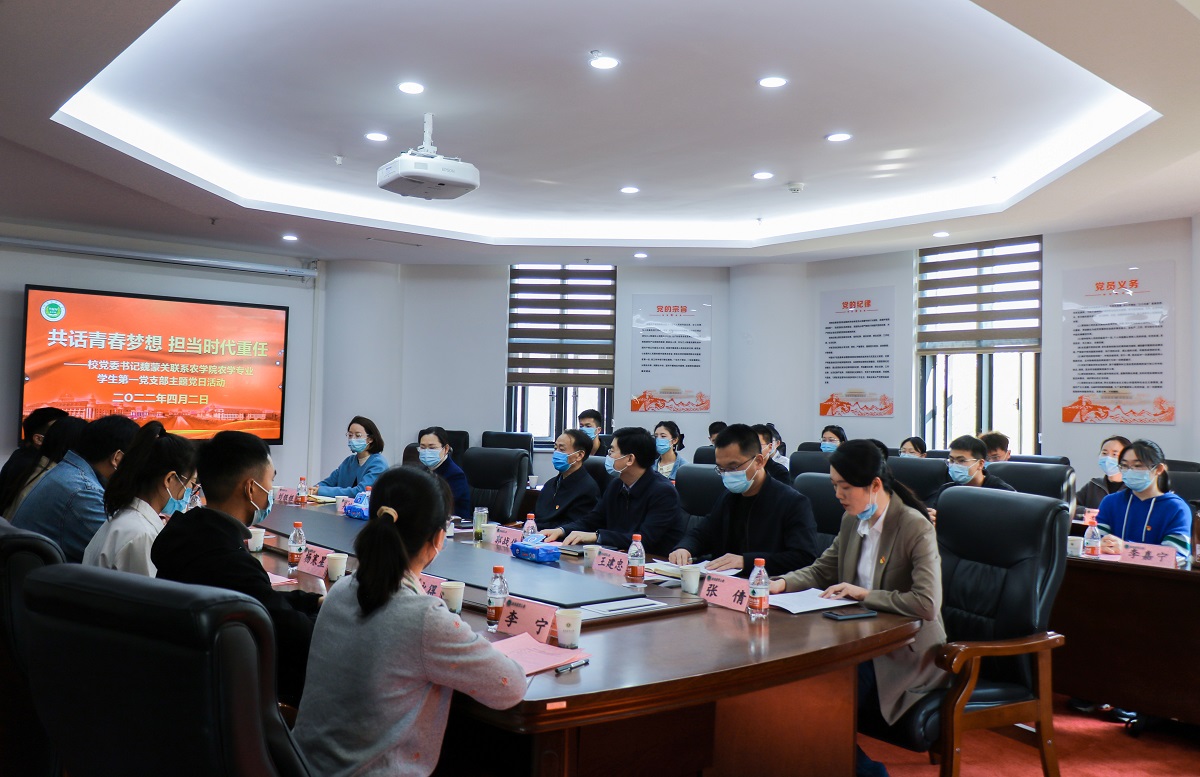 魏蒙关讲话。他对农学专业学生第一党支部所开展的富有成效的学生党建工作给与充分肯定,对支部学生党员的优秀表现表示衷心祝贺。